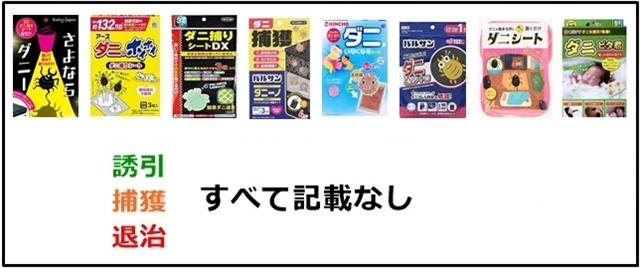 ダニ取りシートには①誘引→②捕獲→③退治の3工程がありますが、「粘着式」シートのほとんどは、効果が立証されていません。