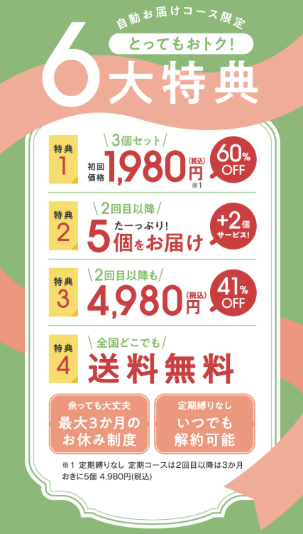 公式サイトならAmazonなどより安く買えるうえ、特典付きなので、おすすめです。
