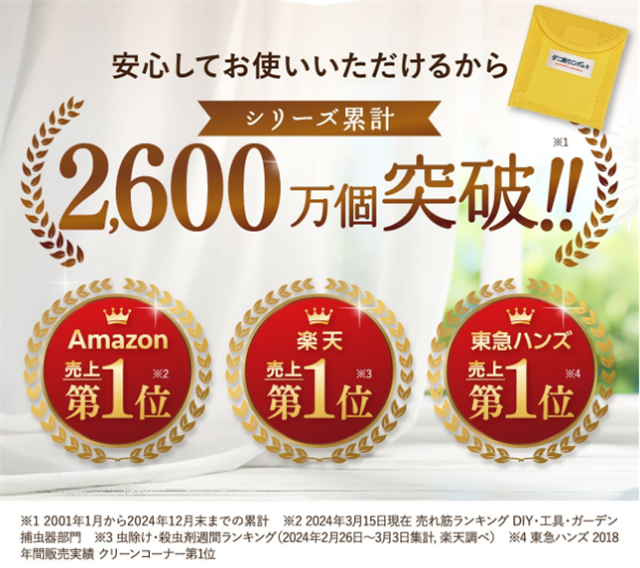 Amazon売上1位、楽天売上1位、東急ハンズ売上1位などを記録して、シリーズ累計では2,600万個を突破!