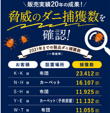 有料ですがダニ捕獲数の測定サービスがあります。定期コースの特典を使えば無料です。